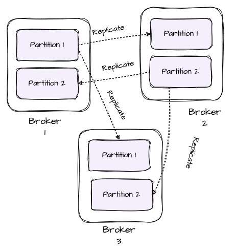 To ensure data durability and availability, partitions are replicated to a configurable number of brokers (the replica factor).
