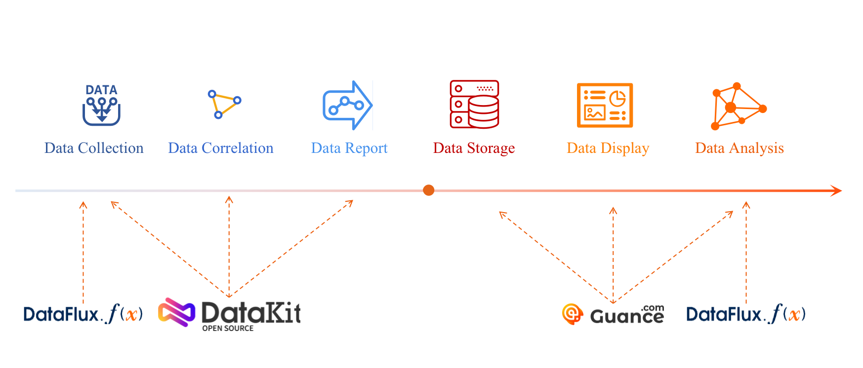 As a powerful data analysis platform, Guance Cloud includes several core modules such as the DataKit [2] unified data collector and the DataFlux Func data processing development platform.