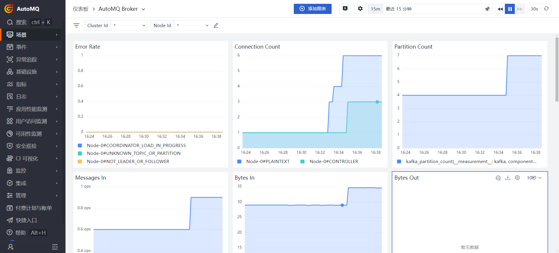 At this point, we have successfully monitored the status of the AutoMQ cluster using Guance Cloud, and the data on the dashboard is obtained by aggregating or querying Metrics indicators.
