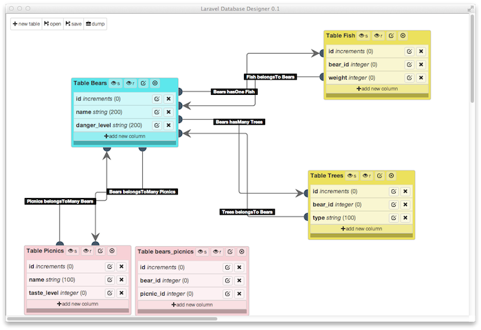 Laravel Database Designer is a graphical migration tools for creating database schema for Laravel 4 PHP Framework. Laravel Database Designer is heavily inspired by Laravel Schema Designer (http://laravelsd.com) Start using LaravelDB Designer here http://biodesignrealworld.github.io/LaravelDatabaseDesigner/