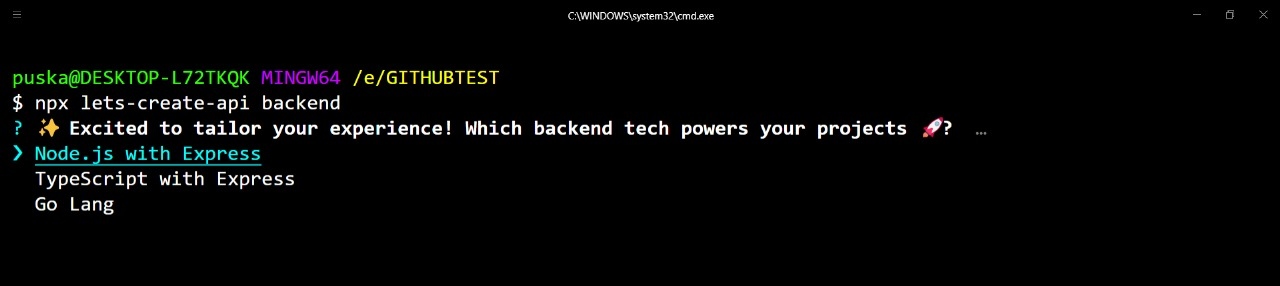 Creating APIs has never been this flexible and straightforward! The CLI For Create API empowers you to choose from a rich set of backend technologies, including Node.js with Express, TypeScript with Express, and Go Lang. Pair these with popular databases like MySQL, MongoDB, and PostgreSQL, and you're ready to build powerful APIs.