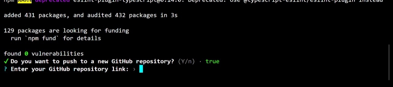 💻 If you wish to push your code to GitHub, type "y" and follow the prompts.
