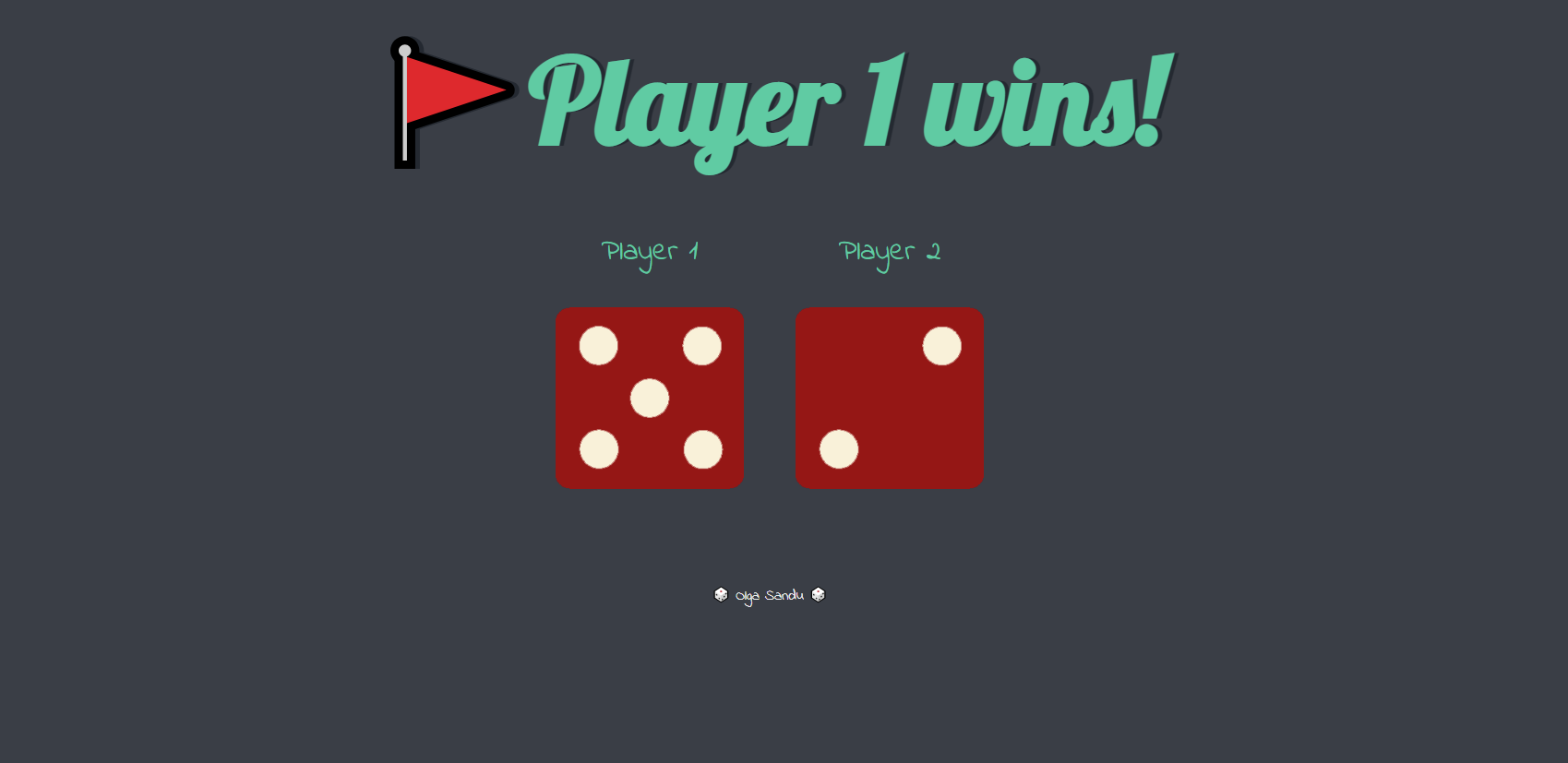 A Javascript Two-player Dice Game. Involves the random generation of dice numbers between two players to determine a winner when the web page is reloaded. Almost the same as the traditional Dice Game.
