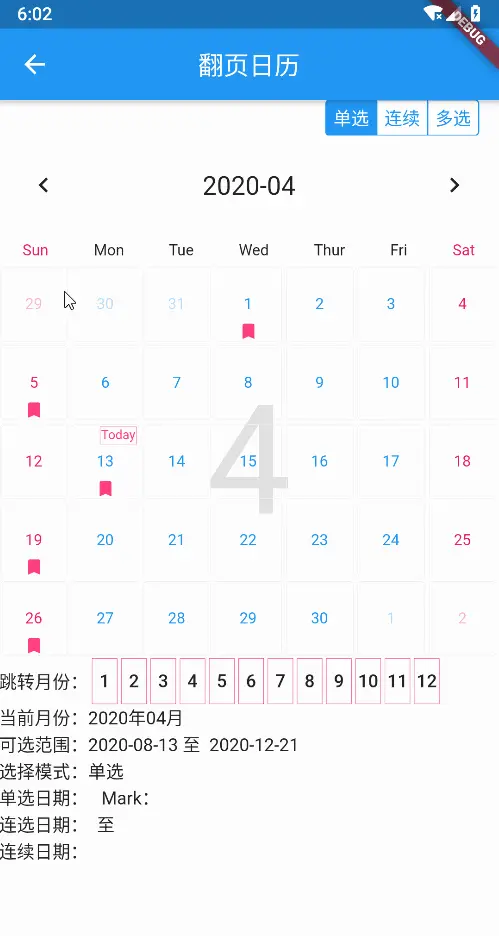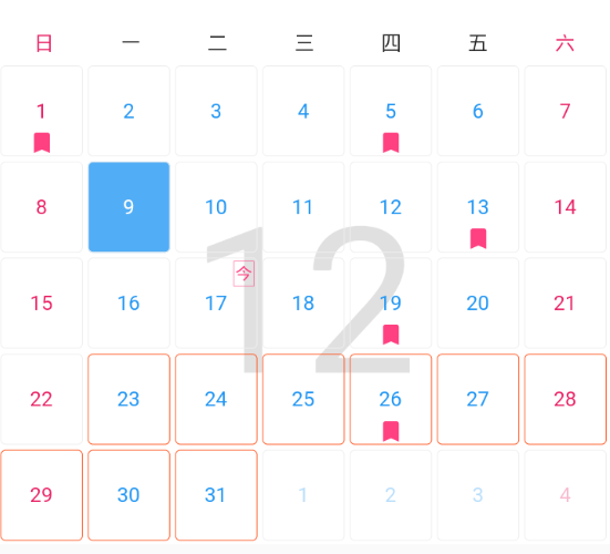 Date component developed with Flutter, plans to support display, swipe left and right, add date mark, radio, display week, etc.