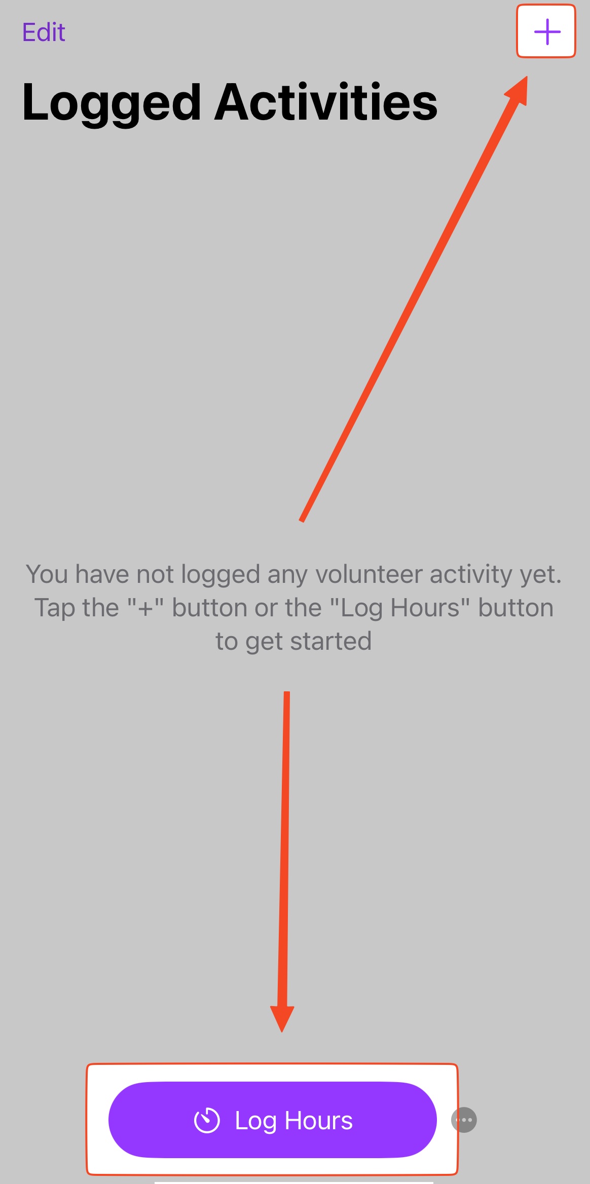 We refer to an instance of volunteering as an "Activity." To log your hours, you must be in the Activities