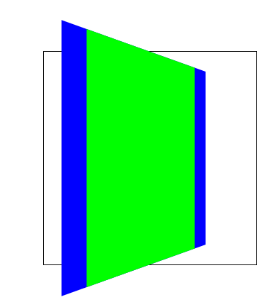 由于最外层设置了 perspective,所以当蓝色块沿Y轴顺时针旋转50°的时候,在二维世界的投影就变现为近大远小。
