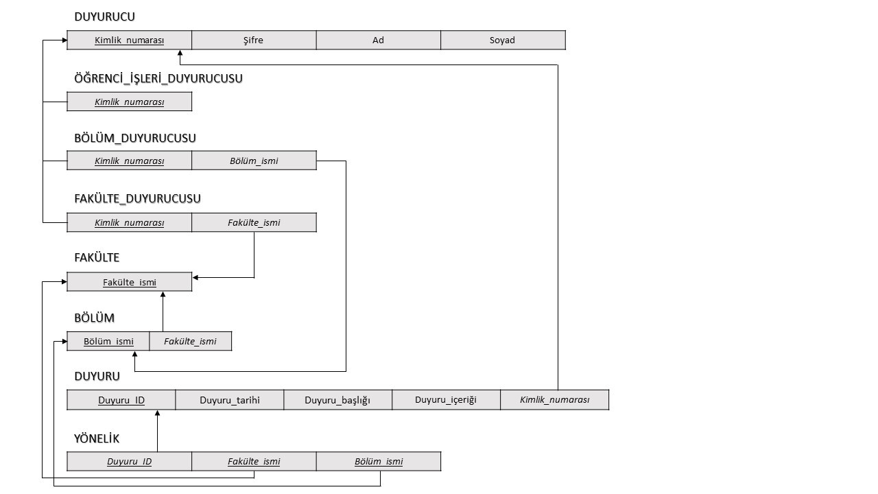 As shown in the figure, foreign key connections are shown with arrows. After this point, it remains to pass to SQL, where the tables, constraints and triggers must be determined.