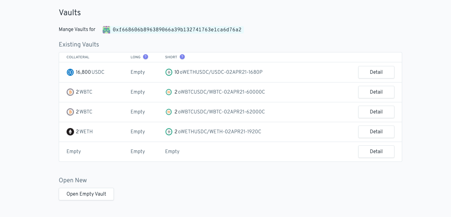 Manage your short position directly with the protocol: Adjust collateral, mint / burn oTokens, or create spreads!