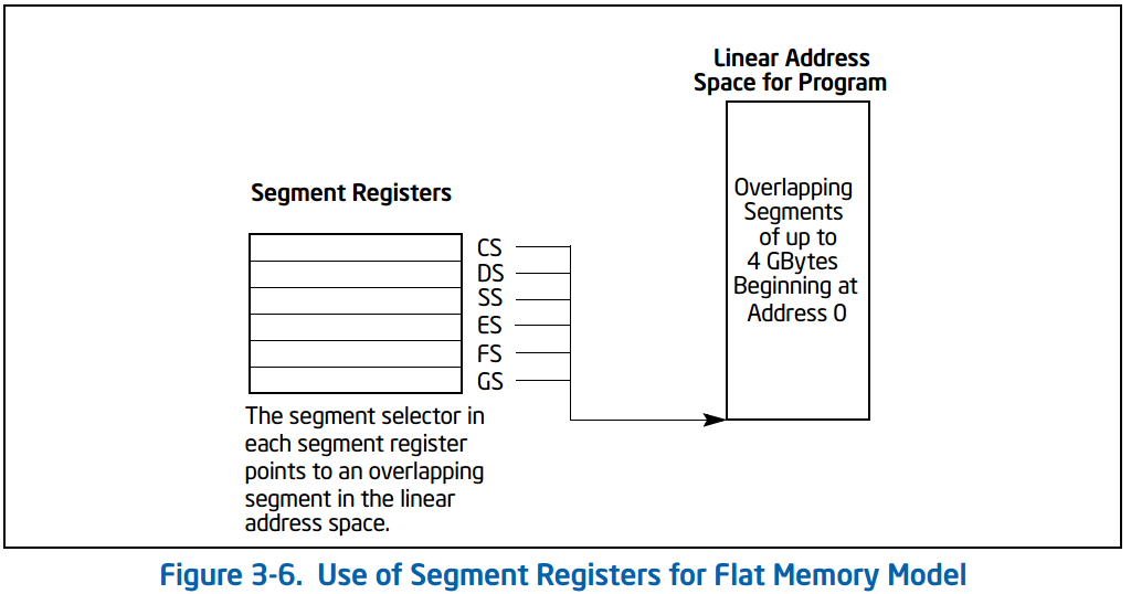 - the processor treats the segment base of CS, DS, ES, and SS as zero in 64-bit mode (this makes a linear address equal an effective address).