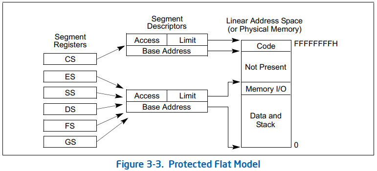 - segmentation is generally (but not completely) disabled, creating a flat 64-bit linear-address space.