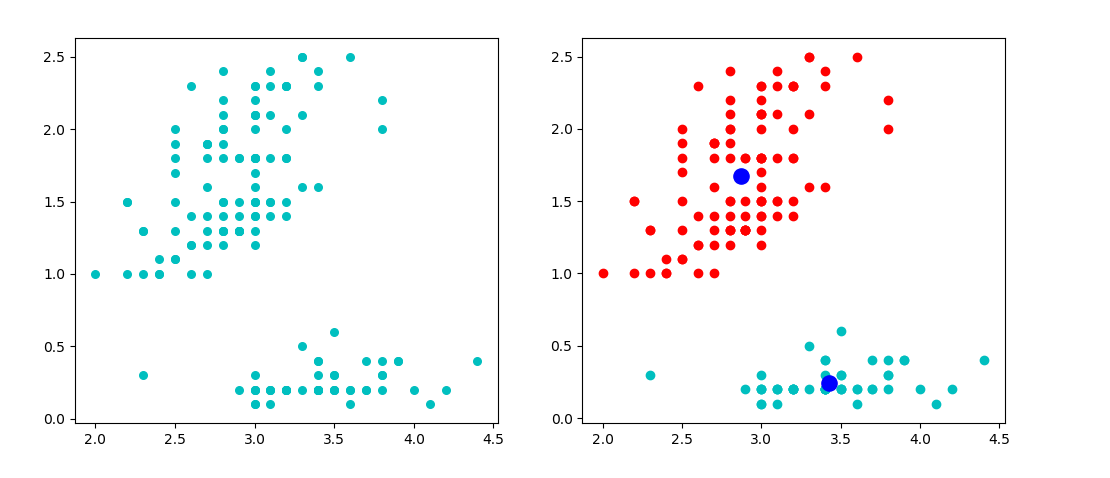 - 划分好数据后,计算每个聚类的均值,并将之作为该聚类的新代表点,因此得到k个新代表点。
