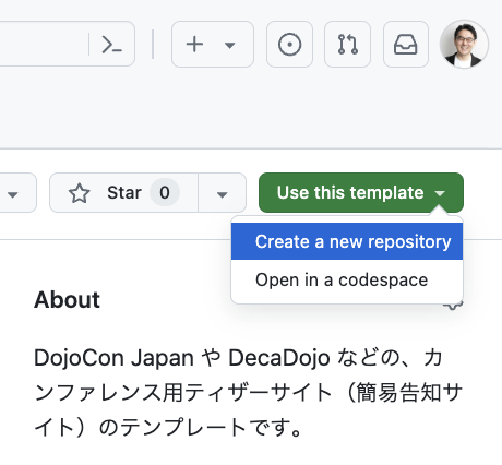 を押す - 各項目に情報を入力し、本テンプレートから新しいリポジトリを作成する