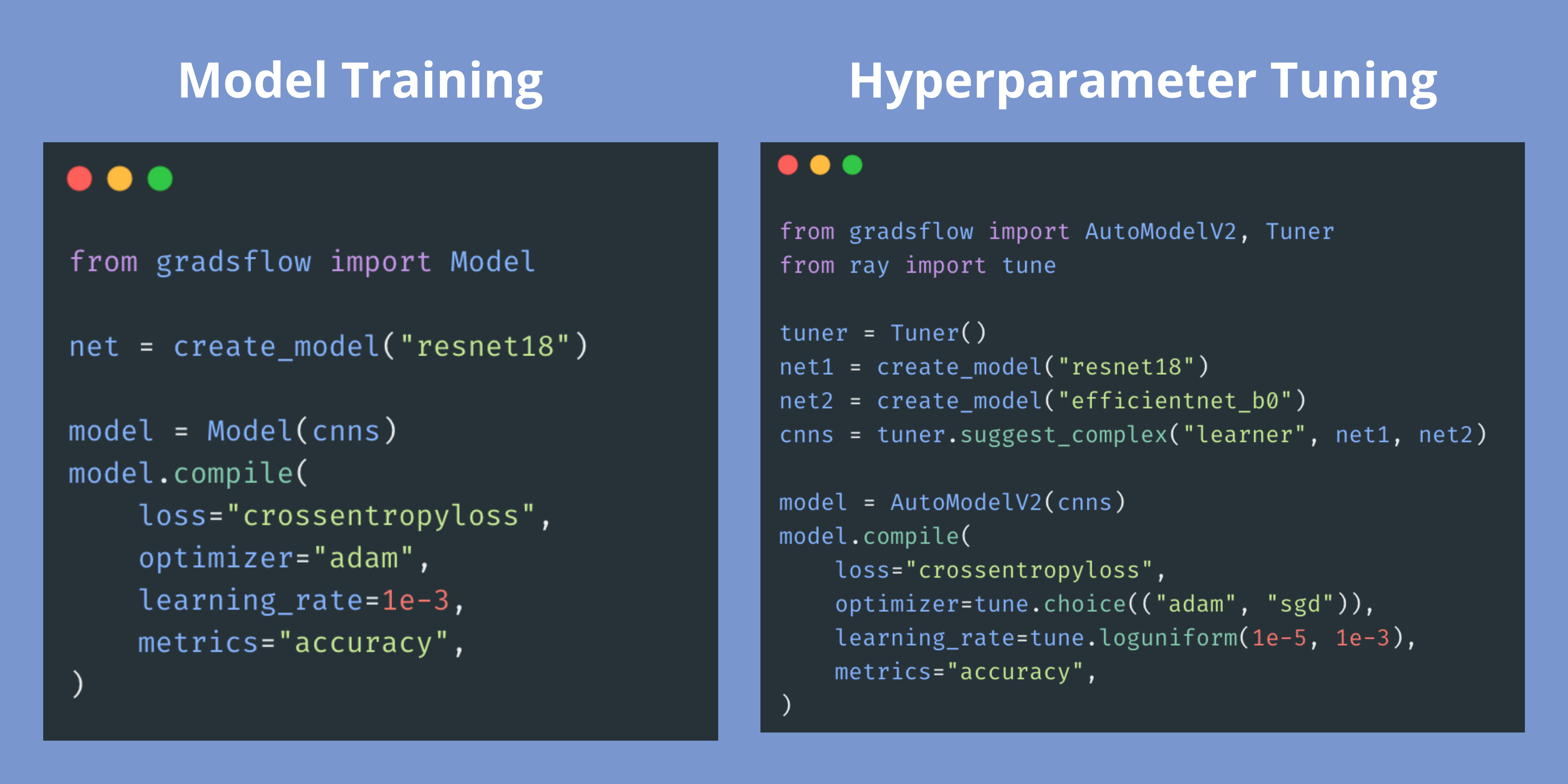 Gradsflow is built for both beginners and experts! AutoTasks provides zero-code AutoML while