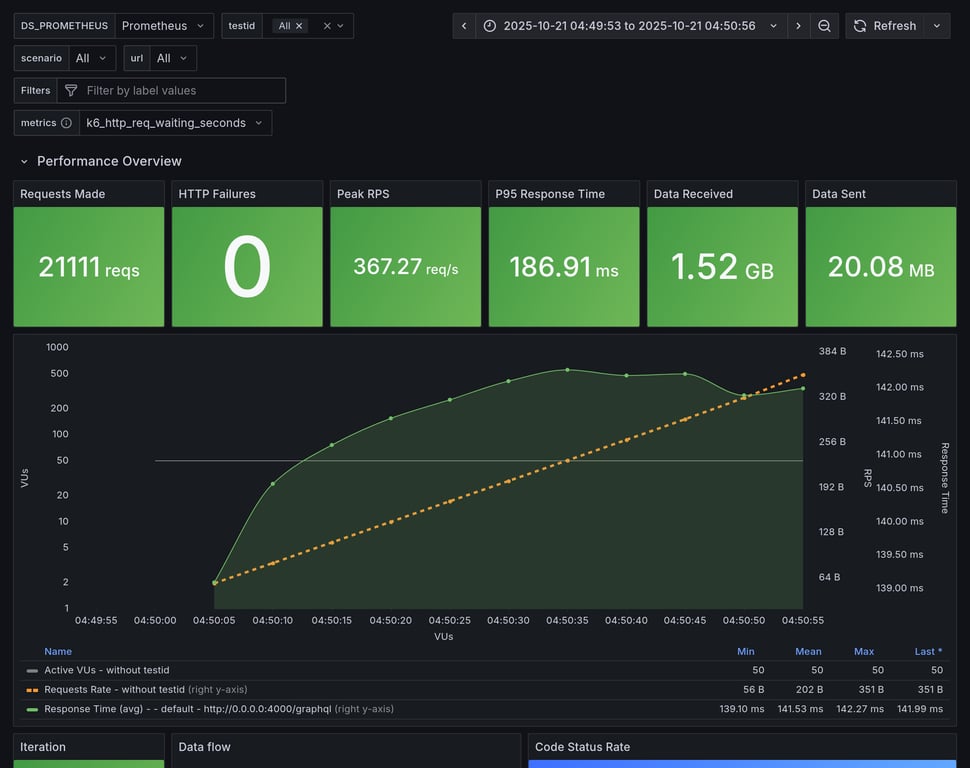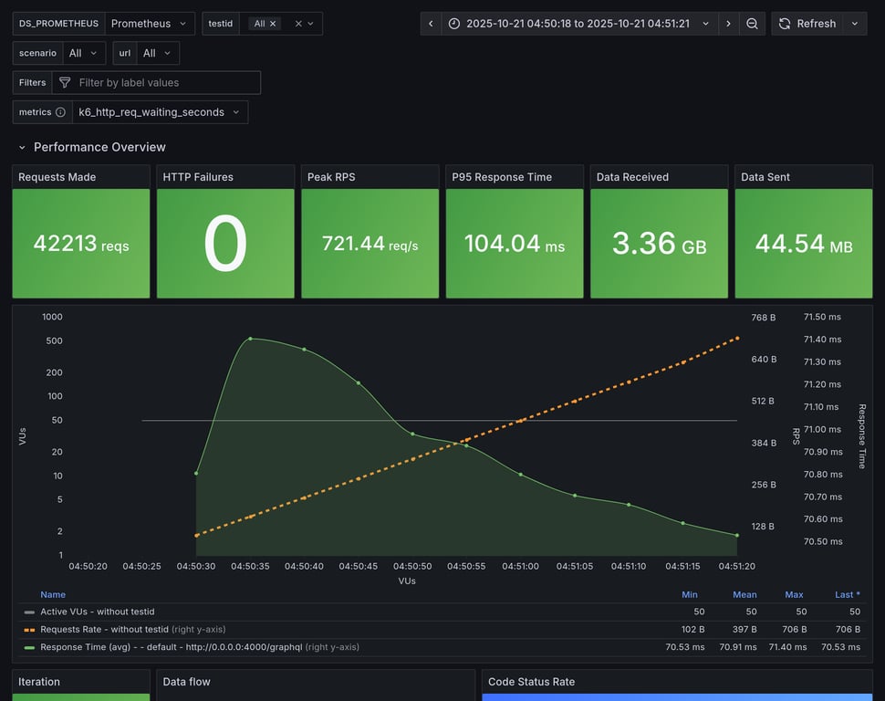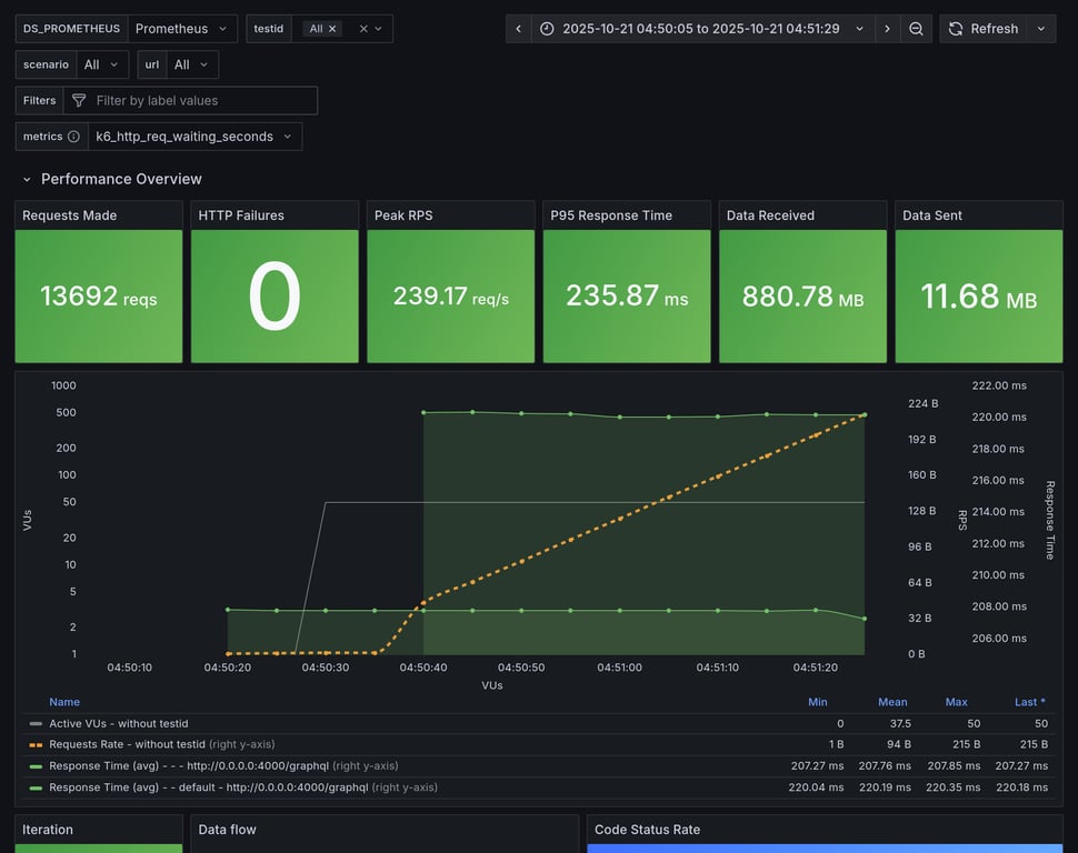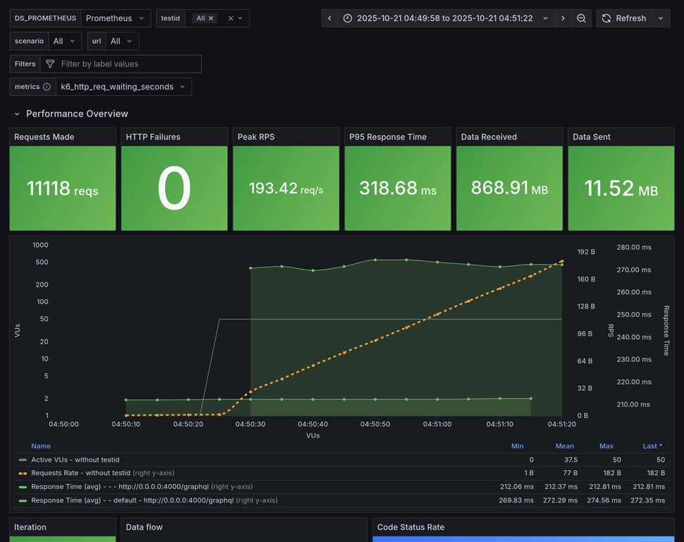 apollo-router | 136 | 11118 total, 0 failed | avg: 272ms, p95: 315ms | ❌ 2 unexpected GraphQL errors |