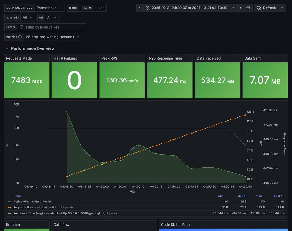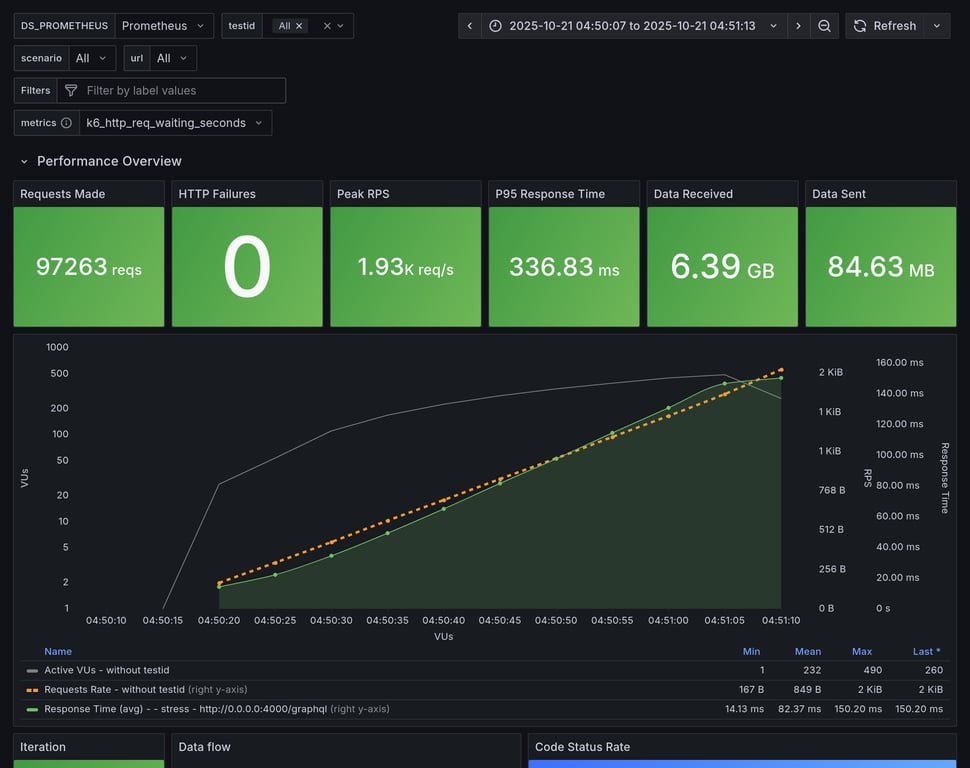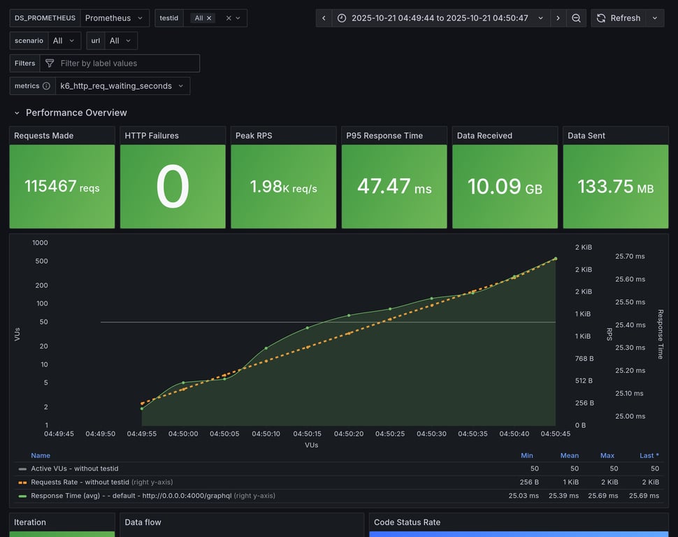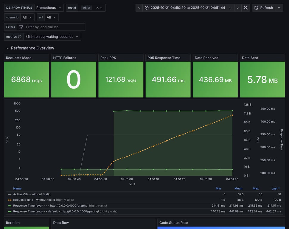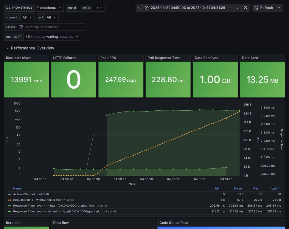 apollo-router | 136 | 11118 total, 0 failed | avg: 272ms, p95: 315ms | ❌ 2 unexpected GraphQL errors |