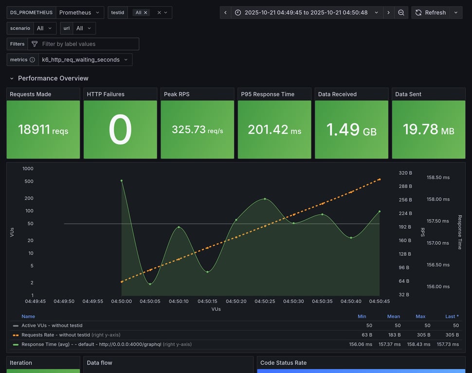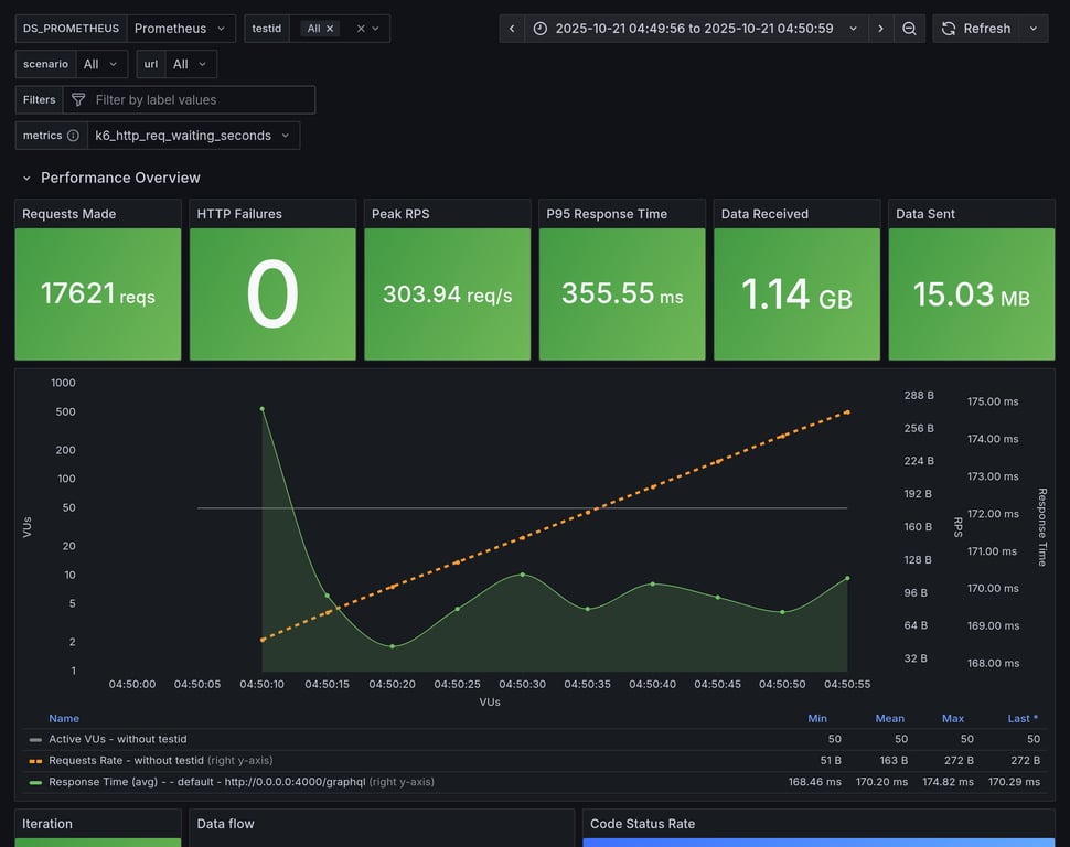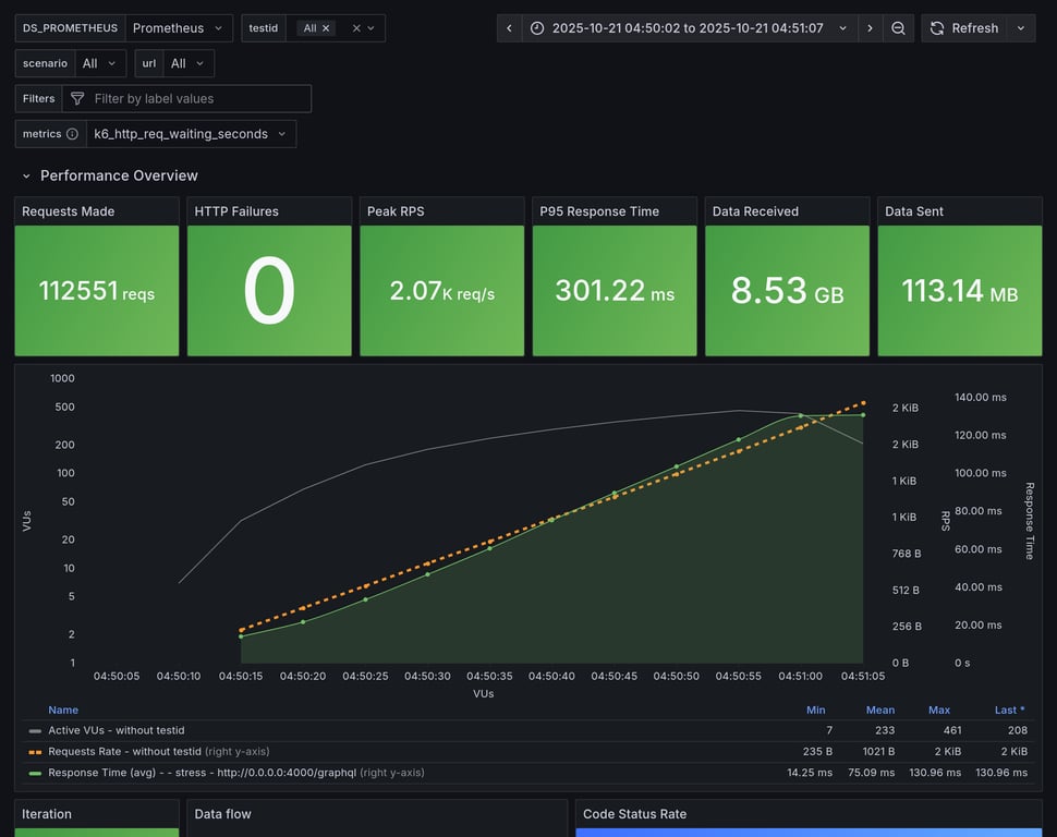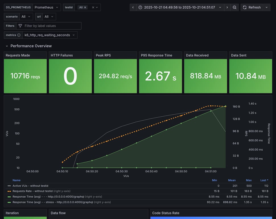 apollo-gateway | 122 | 10011 total, 0 failed | avg: 302ms, p95: 345ms | ✅ |