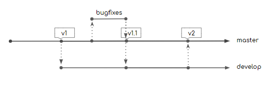 This way the team can work on new features on a separate branch (develop), while the master is intact until the next release. The main advantage of this approach is that, if you have bugs to fix (you will always have), you will be able to solve the bug without having to stash your changes or speed up the features you are developing. So in these situations, we create a short lived branch for the fix (a bug-fix branche), merge on the master and deploy to production with a new tag, and propagate the fix to develop. When the new features are ready, they would already have the fixes, and merging with the master branch would not be a problem [Grazi Bonizi, 2018].