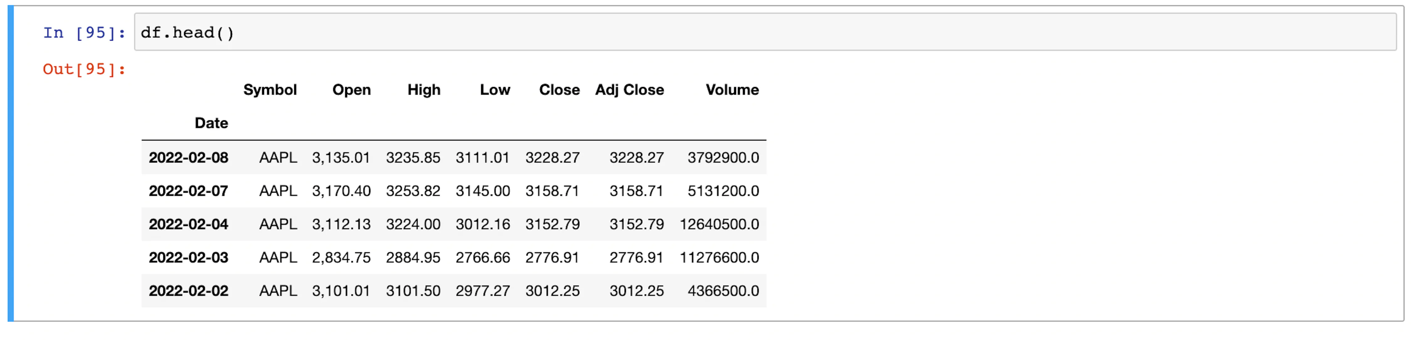 In this example, the “Adjusted Close” is dependent on the “Close” part. Therefore, we’ll ignore the Close