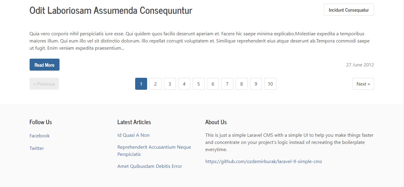Either Clone the repository using git clone: git clone https://github.com/ozdemirburak/laravel-9-simple-cms.git