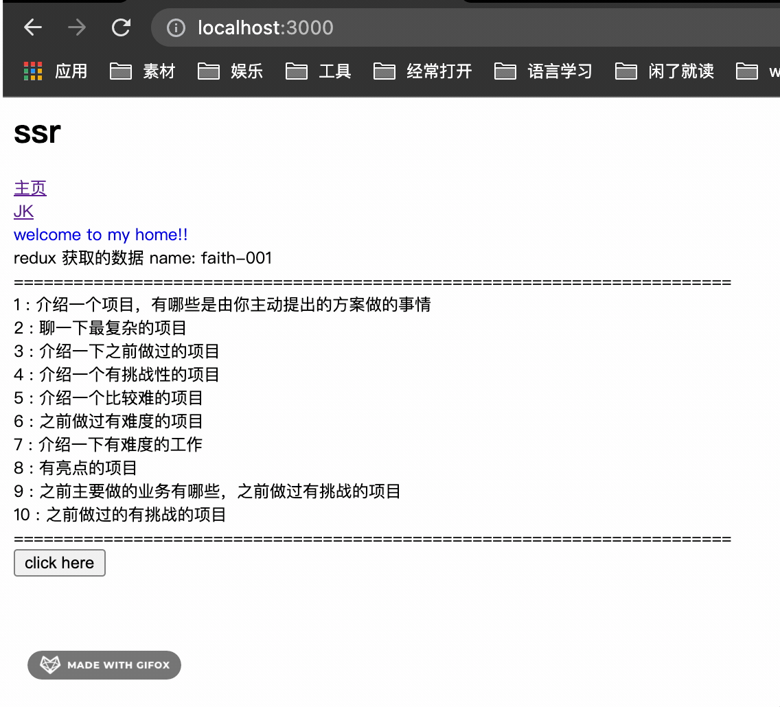 ###特性 1、React 2、Redux 3、SSR 4、Express 5、路由