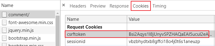 另一個 token 是當你成功登入時,會儲存在 client side ( 使用者端 ) 的 Cookies 中,名稱為 csrftoken
