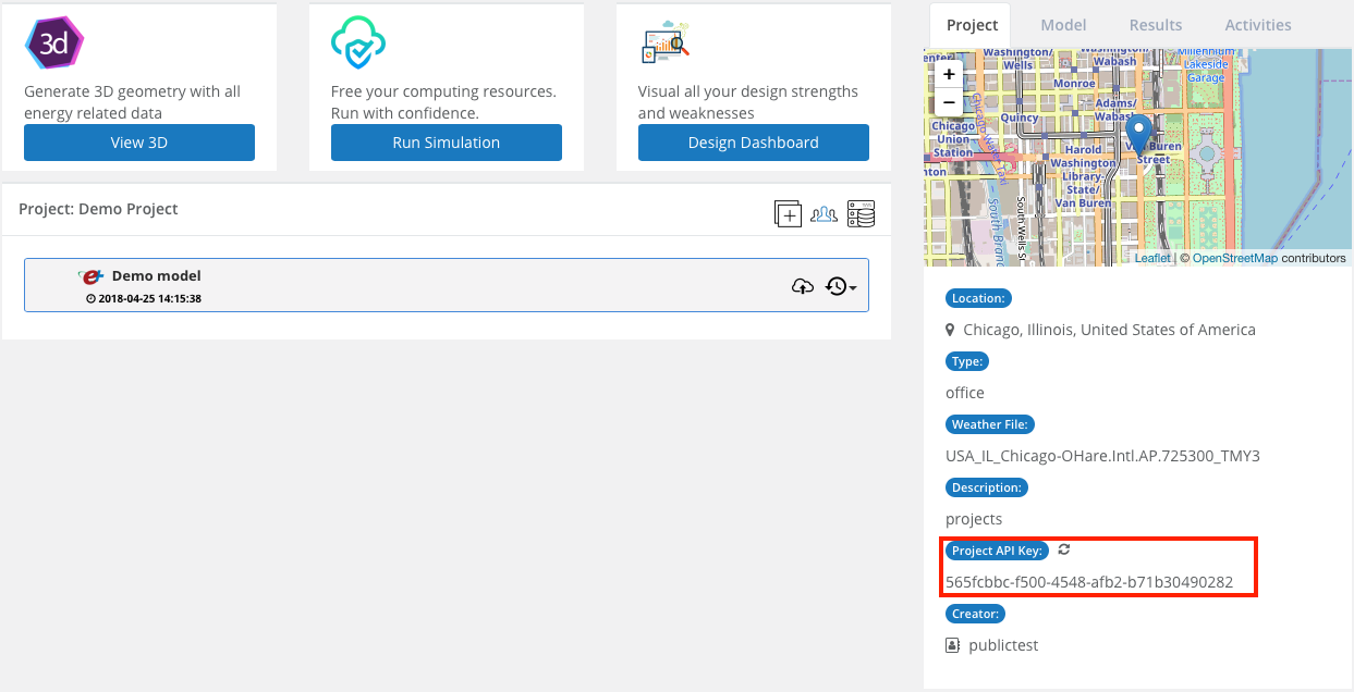 To activate a simulation through API client, you need to supply a project key - a key that helps BuildSim connect your local application to your project. The project key can be found in two places.
